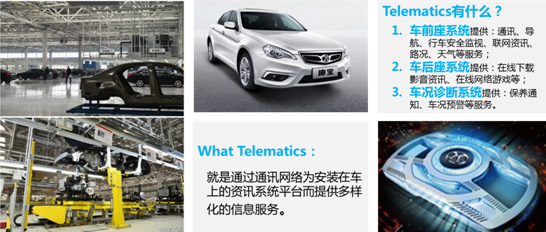 Telematics是Telecommunication和Informatics的缩写,即远程信息服务,无线数据通讯系统